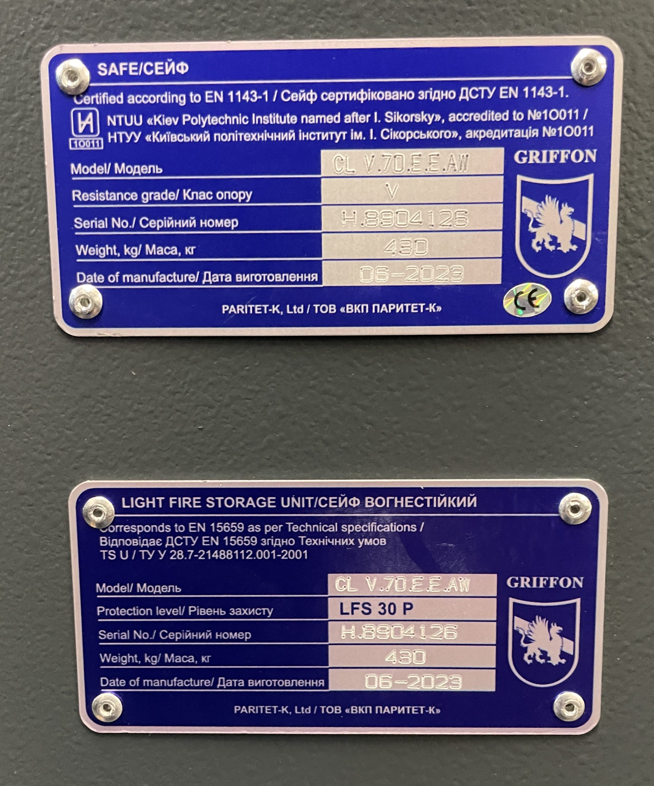 Egon Olsen model 70.EEV er højsikring EN 1143-1 Grade 5 er forsynet med to kodelåse
