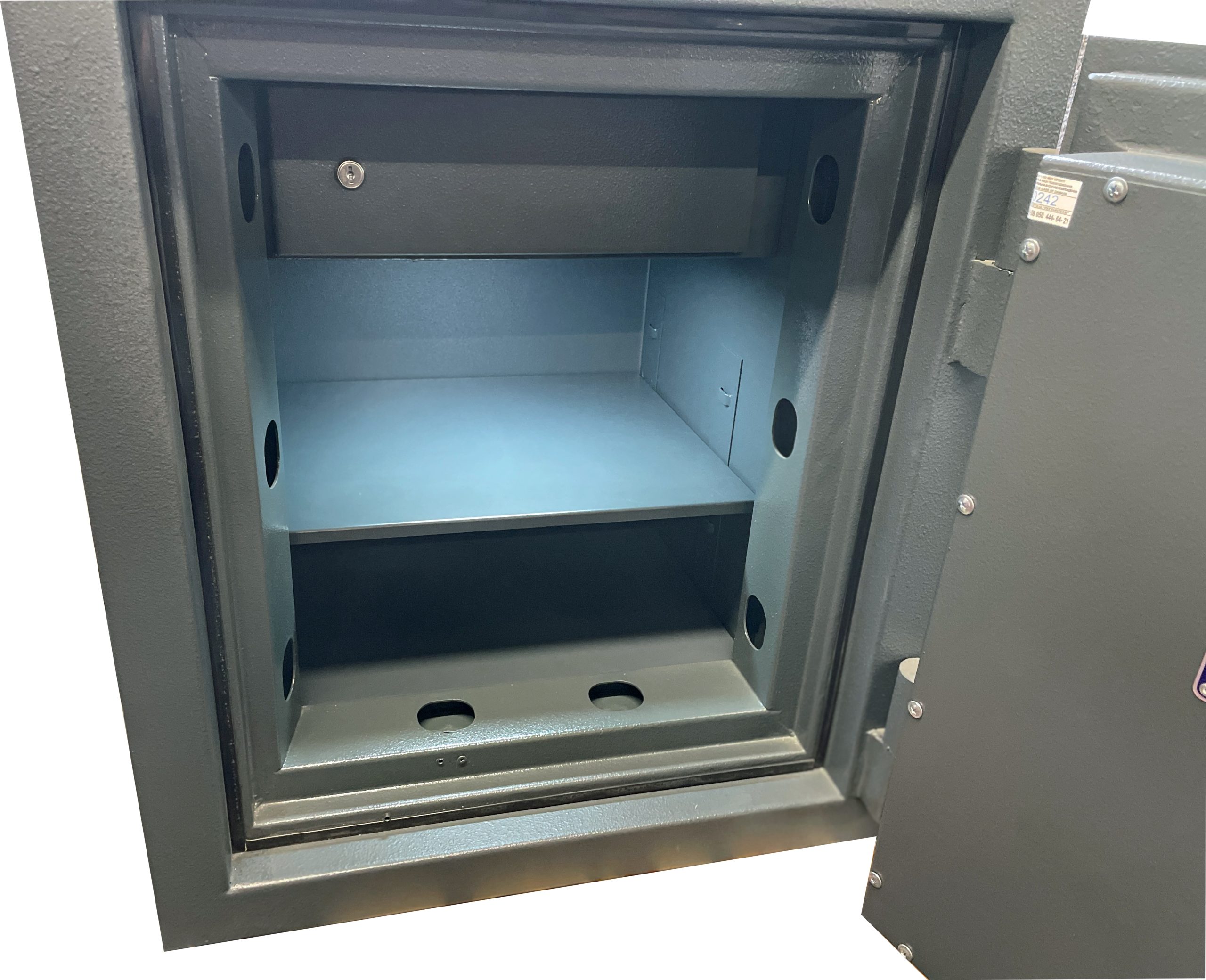Dette pengeskab er designet med ekstremt robuste sikkerhedsforanstaltninger. To separate kodelåse øger sikkerheden betydeligt og giver dig ekstra tryghed. Lågen er forstærket med hele 10 stk Ø32 mm stål rigler, der lukker fra alle fire sider, hvilket eliminerer enhver mulighed for uautoriseret adgang.