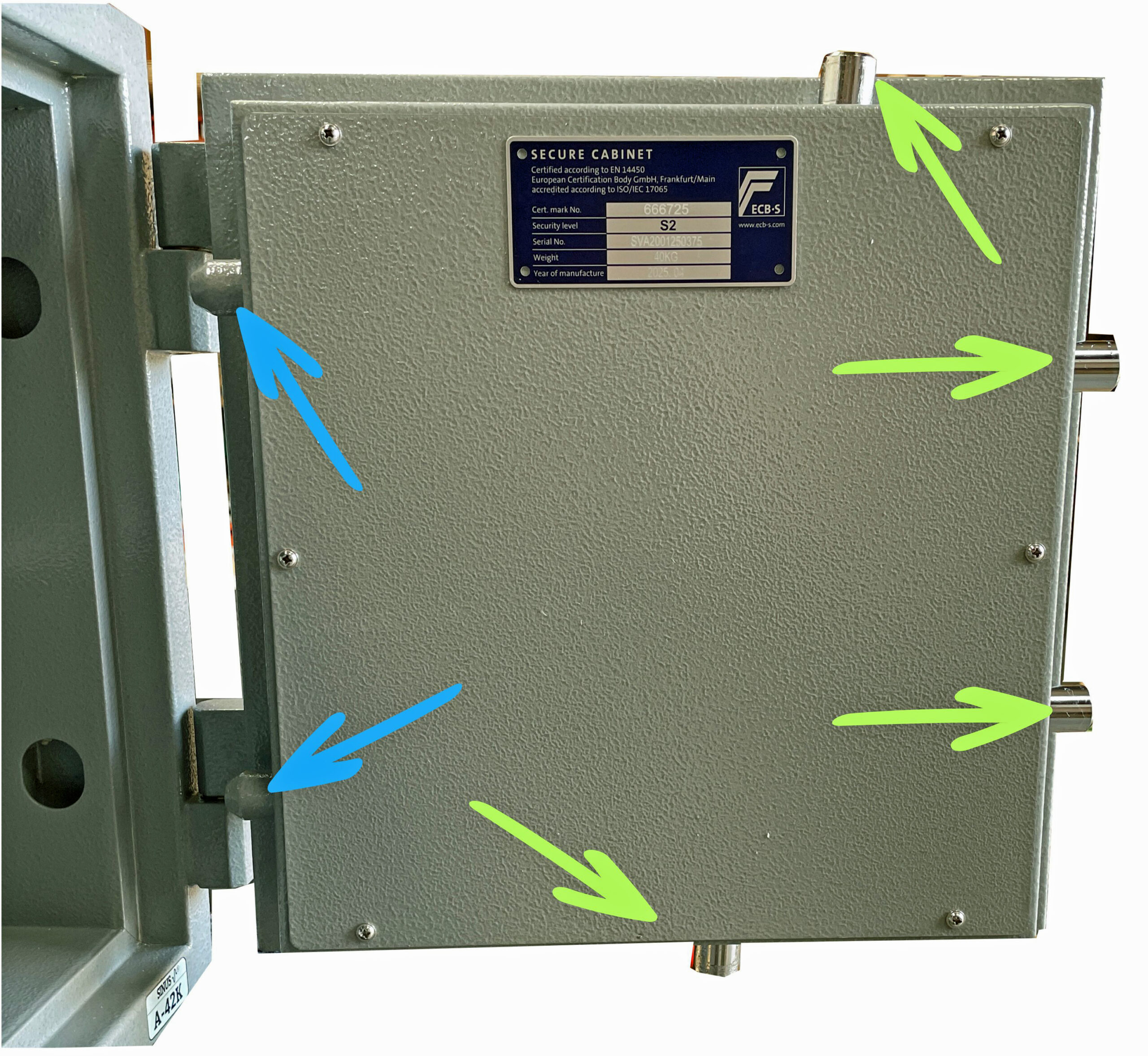 SINUS-serien er certificeret efter EN 14450, sikkerhedsniveau S2, hvilket betyder, at skabet er testet og godkendt af EBC som er uafhængigt laboratorie til beskyttelse mod indbrud.