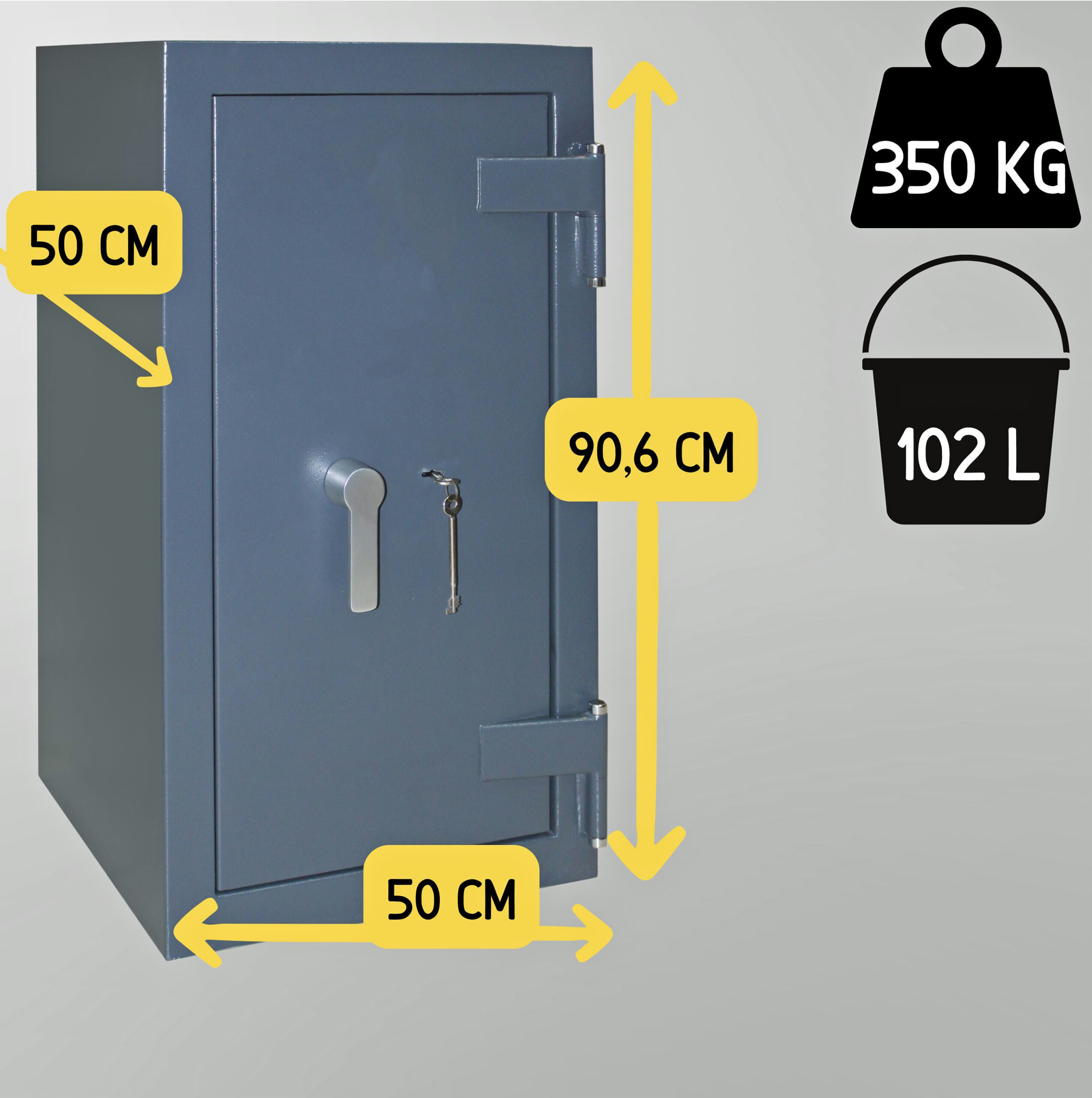 Pengeskabet er forsynet med godkendt lås fra STUV, Tyskland som er godkendt i henhold til VdS Class 1 EN 1300.