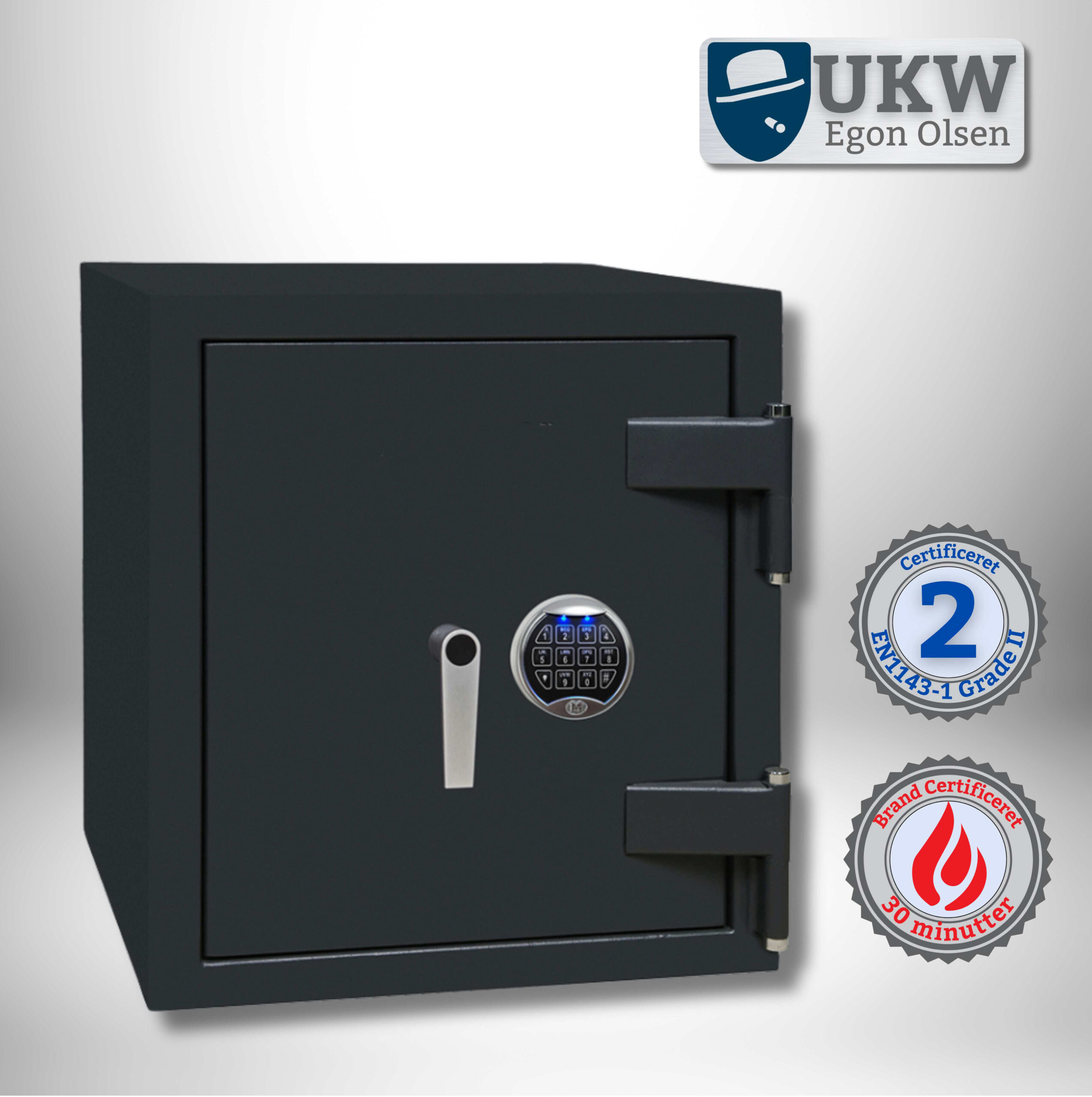 Beskyt dine værdier med UKWI-seriens pengeskabe, der er designet til at levere højeste sikkerhed og indbrudsmodstand. Vores pengeskabe er certificeret til Grade II i henhold til EN 1143-1, hvilket garanterer en pålidelig beskyttelse mod tyveri.